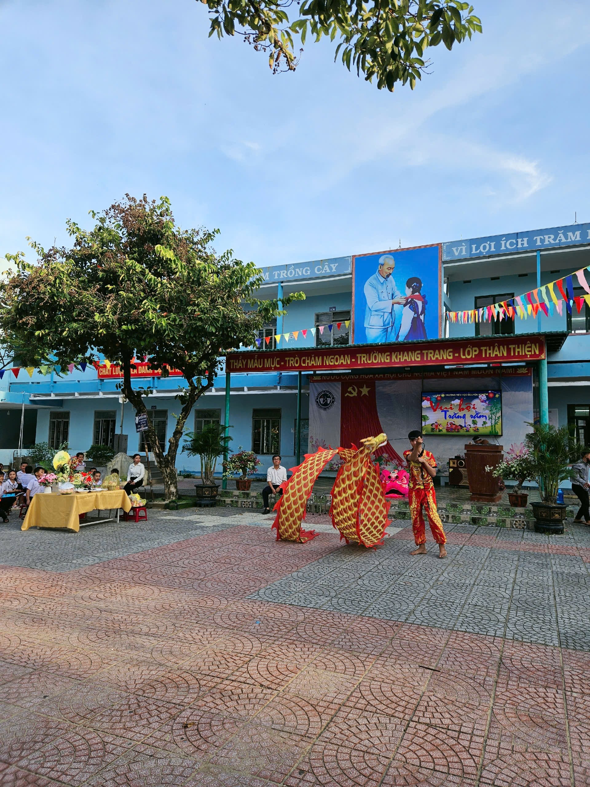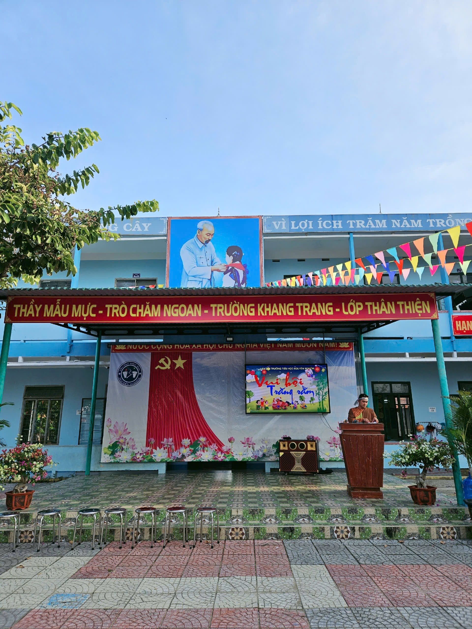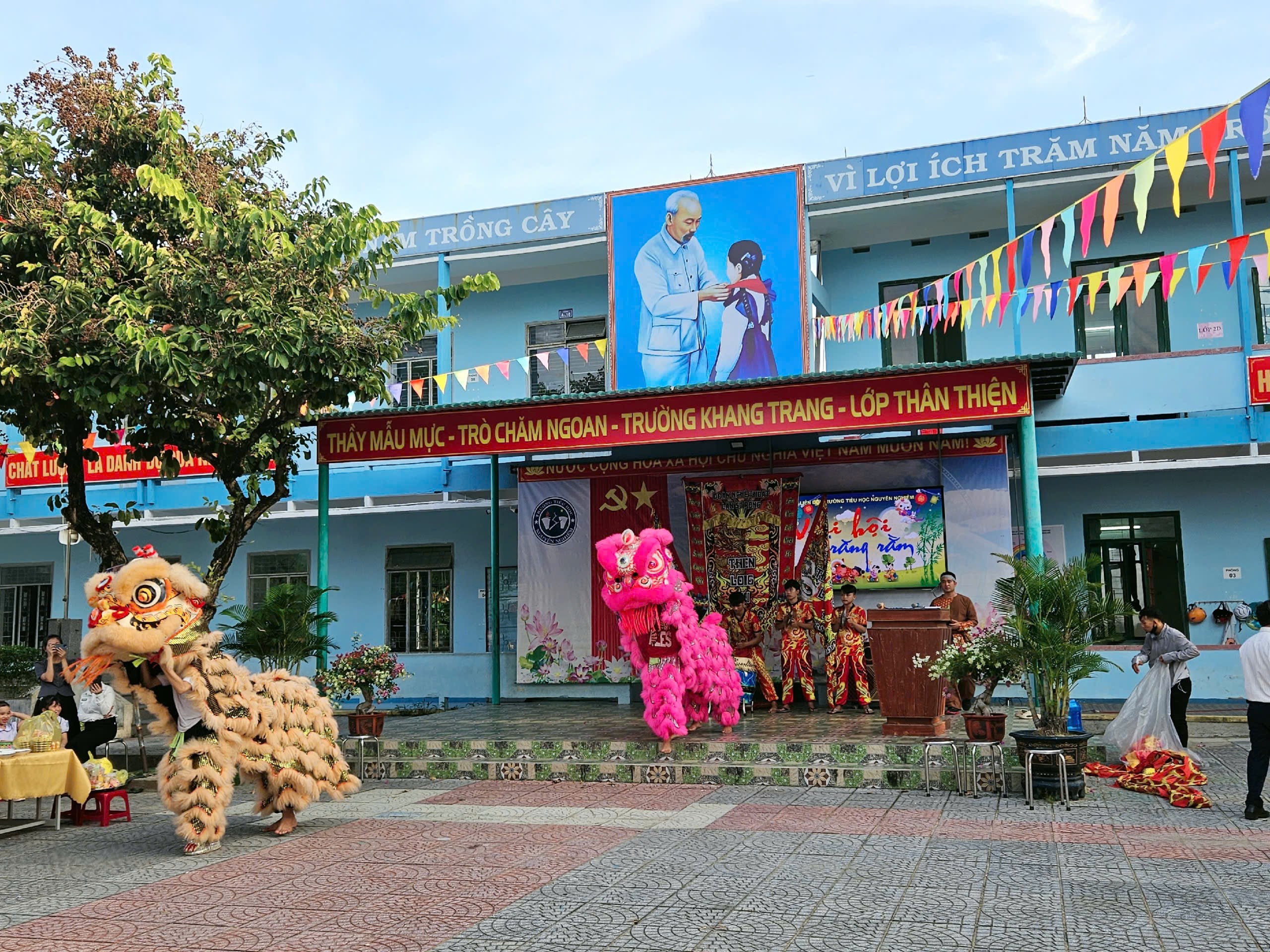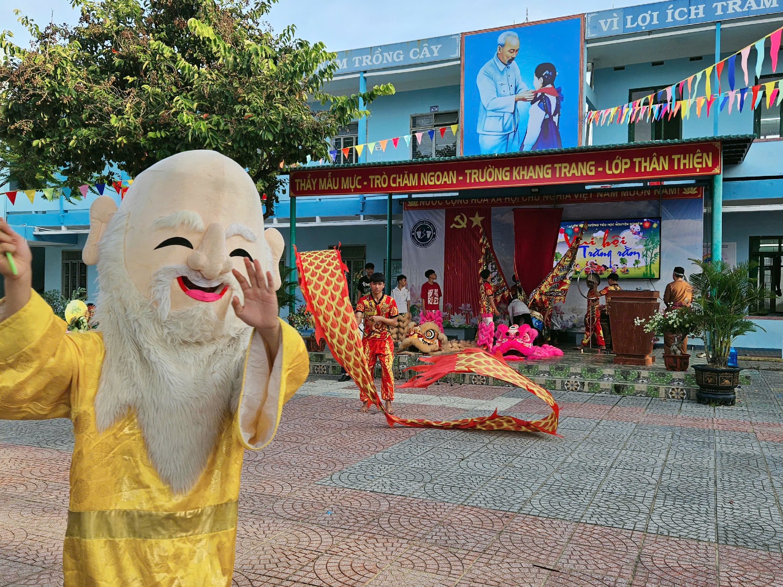 Ngày 06/10/2025, trong không khí trung thu đã và đang rộn ràng trên khắp cả nước. Nhằm mang lại niềm vui và tiếng cười cho mùa Trung thu thêm ý nghĩa, Ban giám hiệu trường Tiểu học Nguyễn Nghiêm đã tổ chức chương trình “Vui hội Trung thu” đầy màu sắc với nhiều hoạt động trải nghiệm lôi cuốn và hấp dẫn. Đến dự và tham gia các hoạt động, về phía nhà trường có thầy giáo Nguyễn Ngọc Tuấn – Bí thư Chi bộ, Hiệu trưởng nhà trường; cô Huỳnh Thị Tín, Phó Hiệu trưởng nhà trường cùng các thầy cô giáo trong Hội đồng sư phạm nhà trường và đông đảo các bậc phụ huynh cũng về tham dự.