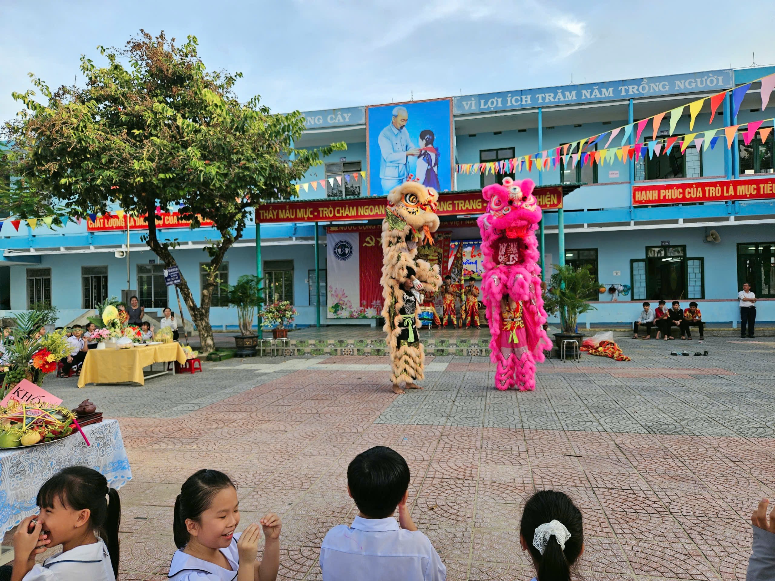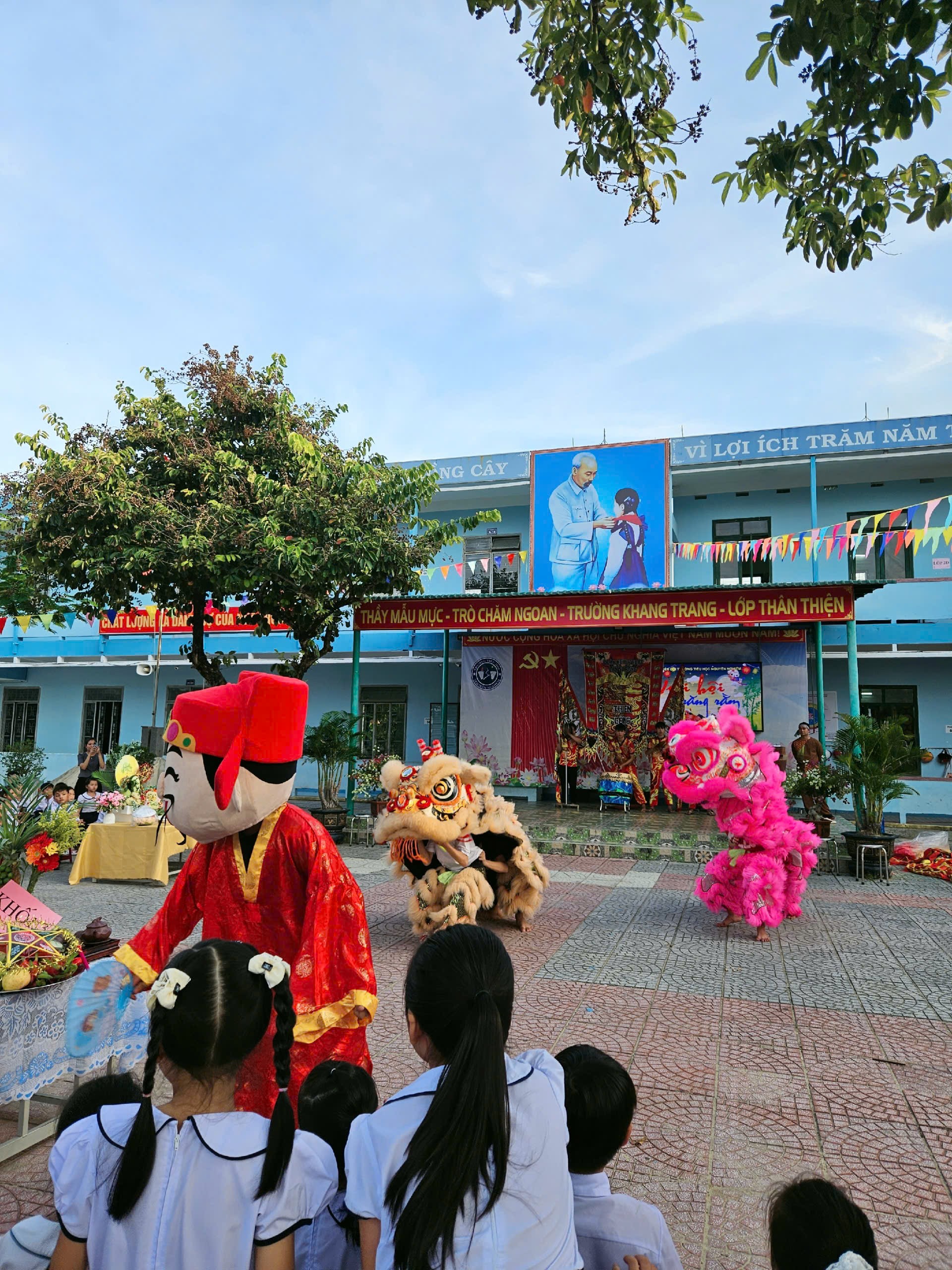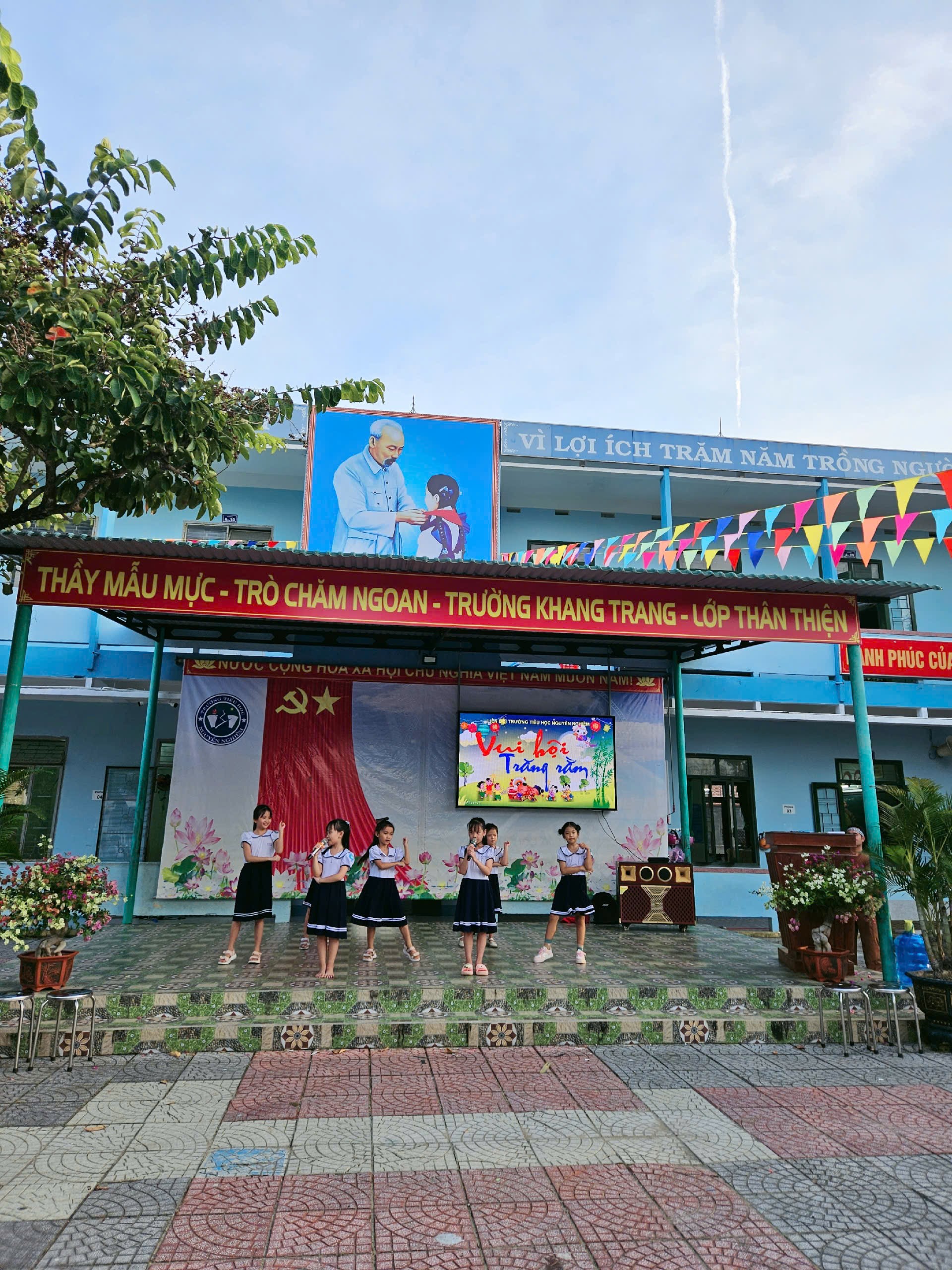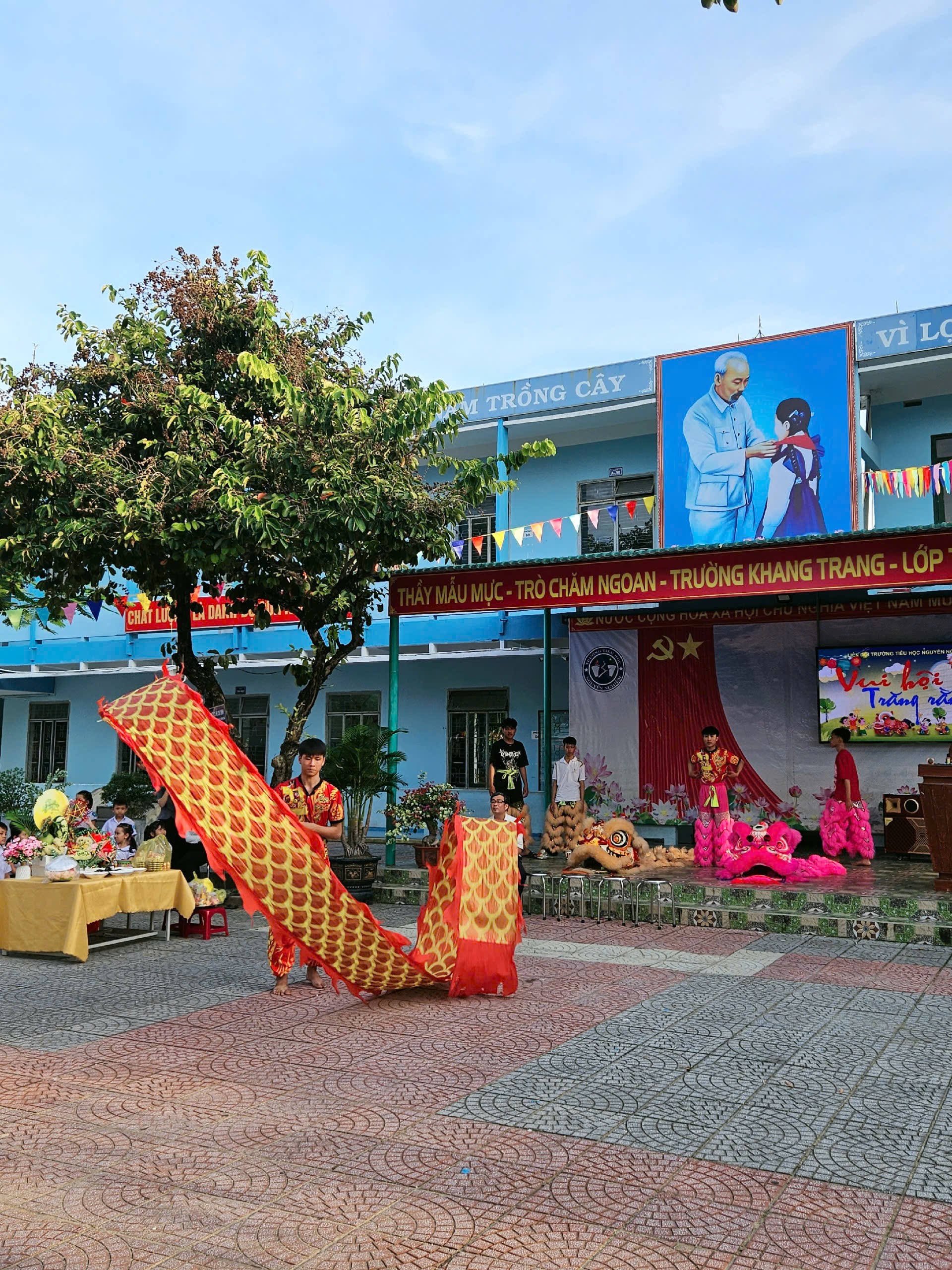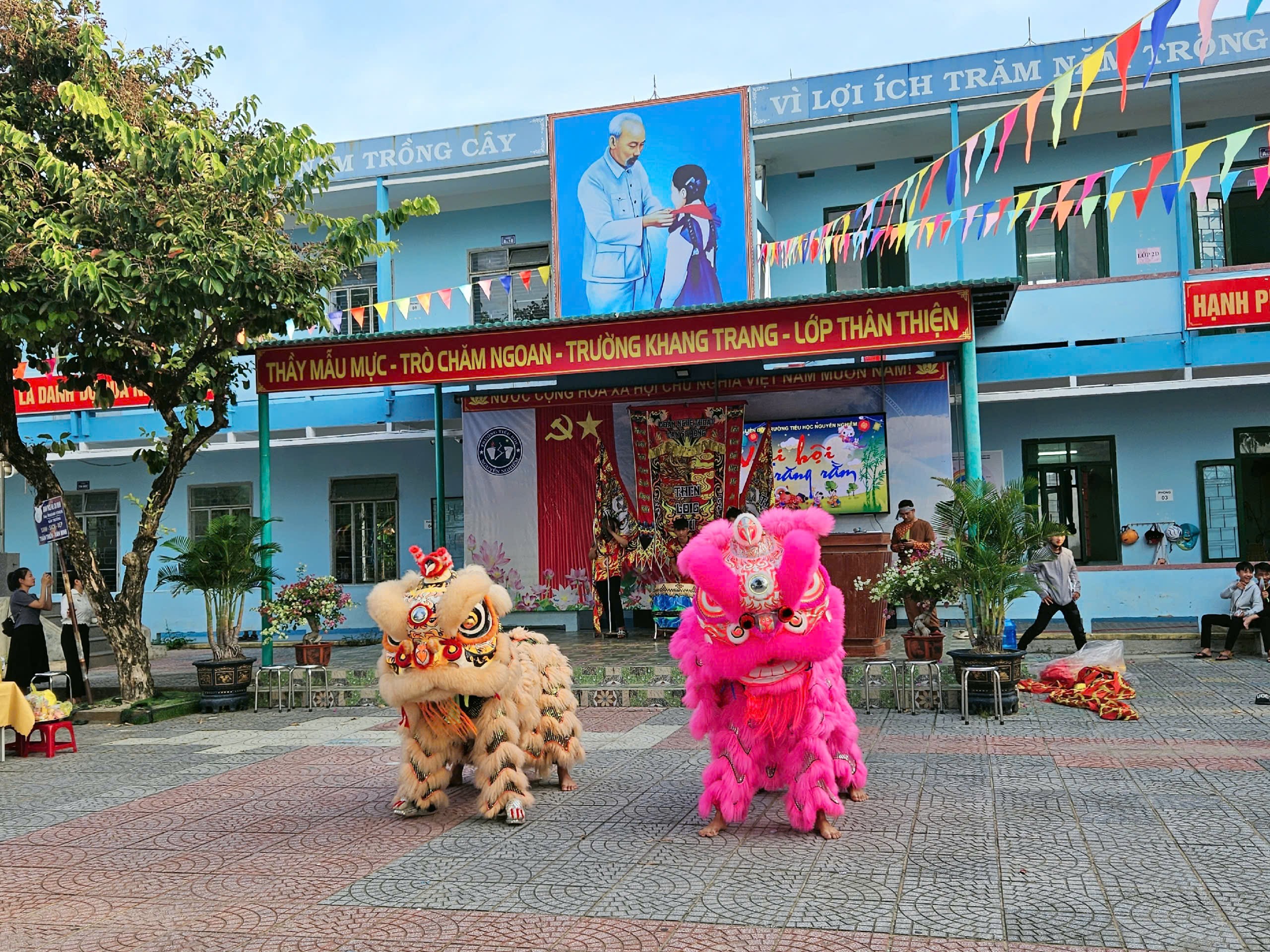 Ngày 06/10/2025, trong không khí trung thu đã và đang rộn ràng trên khắp cả nước. Nhằm mang lại niềm vui và tiếng cười cho mùa Trung thu thêm ý nghĩa, Ban giám hiệu trường Tiểu học Nguyễn Nghiêm đã tổ chức chương trình “Vui hội Trung thu” đầy màu sắc với nhiều hoạt động trải nghiệm lôi cuốn và hấp dẫn. Đến dự và tham gia các hoạt động, về phía nhà trường có thầy giáo Nguyễn Ngọc Tuấn – Bí thư Chi bộ, Hiệu trưởng nhà trường; cô Huỳnh Thị Tín, Phó Hiệu trưởng nhà trường cùng các thầy cô giáo trong Hội đồng sư phạm nhà trường và đông đảo các bậc phụ huynh cũng về tham dự.